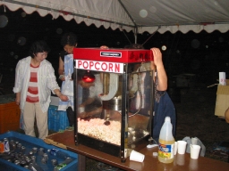 今回は、このヤンマーの発電機を使用して、模擬店で使うポップコーン機(1kw)やカキ氷機(1kw)の電力を地元で集めた「使用済みてんぷら油」から精製 したバイオディーゼル燃料で賄いました。