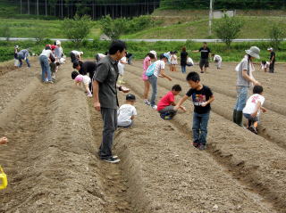 H23.6.19:H23年ひまわり夢プロジェクト始動 :与謝野町加悦地区にて「ひまわり夢プロジェクト」ひまわり種まき実施 (京都新聞取材)